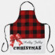 Red and Black Buffalo Plaid Check Watercolor Bow Apron