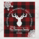 The product design features a silhouette of a reindeer on a classic red and black buffalo plaid pattern. Combined with your own personalised text, this composition makes rustic, modern, and unique Christmas holiday wine labels.
