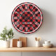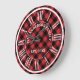 Red And Black Buffalo Plaid Rustic Roman Numeral Large Clock