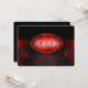 Red and black graduation invitation with light and dark red stripes and a red ribbon going across showing the year of graduation. The back of the card is black with light red font for people to fill in the graduation announcements.