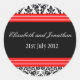 Red and black damask wedding sticker which can be used as an invitation seal.