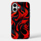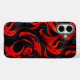 This phone case has a red and black design on it.