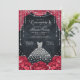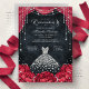 Red and Black Diamond Floral Quinceanera Invitation