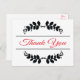 Say Thank you with style! This charming thank you postcard features a black floral leaf frame with a contrasting vibrant red thank you greeting highlighted against a crisp white background.