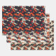 A set of three Japandi style wrapping paper sheets in red, black, and white.