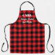 Red and black lumberjack plaid BBQ apron for men. Custom cooking and baking aprons for women and men. Personalised with your name or funny quote. Chequered pattern fashion print design with elegant script typography template. Create your own one of a kind Birthday party gift for mum, bride, dad, father, mother, wife, daughter, sister, brother, bride, husband, friend, grandma, grandpa, kids, boss, co worker, chef, cook, colleague, employee, barista etc. Available in small, medium and big extra large size. Also great for dinner party, art & crafts work, dish washing, bakery shop, DIY home projects, business, restaurant work, coffee shop etc. Customise the looks to any colour. Long and short versions available.