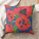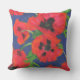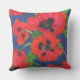 Red and Black Oriental Poppies Pattern on Blue Cushion