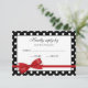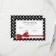 A stylish black polka dot pattern with a red ribbon illustration is featured on this RSVP response card. Easily customise with your information. Designs are flat printed illustrations/graphics - NOT ACTUAL RIBBON.