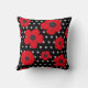 Red and Black Poppy and Polka Dot Pattern Cushion