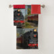 Red and Black Railroad Train Bath Towel Set