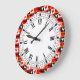 Red and Black Rooster Chickens and Hearts Pattern Large Clock