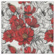 Red and Black Roses Pattern Flower Outline Fabric