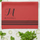 Red and Black Sophisticated Stripes and Monogram Tea Towel