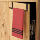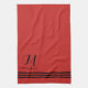 This simple, elegant kitchen towel will add a personalised touch of style to your kitchen! Black stripes and your monogram in script appear on a rich, red background.