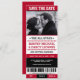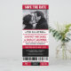 Sports ticket themed save the date invites are cool and fun! They look like a sports ticket to celebrate the event of the season. Colour palette in red and black. Contact for custom colours.