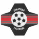 This sporty design is perfect for any soccer team player. Add the athlete name. You can change all of the colours to match your team colours.