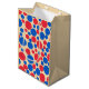 Medium Size Party Gift Giving Bag printed with Red And Blue Dots On Tan creamy tan natural wood colour background artwork design illustration by TheFabricSeal at Zazzle. #ZazzleMade https://www.zazzle.com/store/thefabricseal