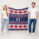 Red and Blue Fair Isle Nordic Argyle Monogram Fleece Blanket