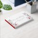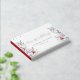 The guest book you’re referring to features a beautiful floral design with red and blue flowers, complemented by green foliage. The cover includes elegant text that reads “Our Wedding,” with customisable names and a wedding date. This guest book is perfect for couples looking to add a personal and stylish touch to their wedding stationery. It’s ideal for guests to leave their well-wishes and memories, making it a cherished keepsake for years.