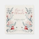 The red and blue floral wedding napkins feature a beautiful design with red roses and blue flowers, complemented by grayish-blue leaves and stems. The central text reads “love & thanks” in a cursive font, making them perfect for expressing gratitude to wedding guests. These napkins also include customisable names and event dates, adding a personal touch. Ideal for those seeking elegant, botanical-themed wedding stationery, these napkins combine vibrant colours with a sophisticated floral arrangement, making them a charming addition to any wedding celebration.