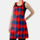 Geometric Red and Blue Color Harlequin Diamonds Checkered Shapes Pattern Design