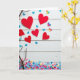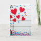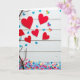 This design shows a white wooden background with faint horizontal planks that add gentle texture behind the scene. Red and blue paper hearts are scattered across the middle, spaced loosely so they feel light and easy, like love notes drifting by 🥰. Along the left edge, two bare brown branches reach inward, giving a quiet, earthy frame against the bright hearts. A few smaller hearts include soft color fades from yellow into purple, adding a sweet, dreamy touch without stealing the focus. Near the bottom, a dense border of tiny hearts in pink, blue, yellow, and purple gathers like confetti after a shared laugh ❤️. The greeting sits in the upper area in simple, rounded white lettering, standing out clearly against the open background. It carries a calm, affectionate tone that fits both romance and close friendship, making it easy to share Valentine’s Day feelings with someone you care about.