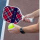 Red and Blue Houndstooth Plaid Pickleball Paddle