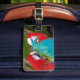 Red and blue macaw parrot print luggage tag