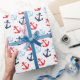 Red and Blue Nautical Anchors Pattern Wrapping Paper