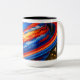 Red and Blue Planet with Rings Two-Tone Coffee Mug