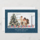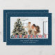 Custom red and blue photo Christmas cards featuring Christmas lights, falling snow and a marquee sign font title. Easily personalise these beautiful red and blue photo Christmas cards with your image and a family name.