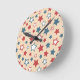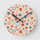 Red and Blue Stars, 4th of July, Beige Background Round Clock