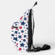 Tossed multi-directional pattern with different sizes of USA American Old Glory flag red and blue stars set on a solid white background. This design has a fixed background, but the size and position of the pattern can be changed. This is a proud patriotic 4th of July Independence Day pattern that will look great on any other day of the year as well.