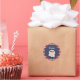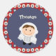Cute cartoon design for the young boy who wants to be an astronaut, featuring a spaceboy flying through the air with stars behind him. The border has a red background with blue and cream stars.