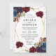 Red and Blue Winter Flowers Gold Frame Wedding Invitation