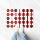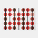 This modern geometric pattern features rows of bold circles in shades of red, maroon, chocolate brown, and soft blush pink. The dots are arranged vertically on a crisp white background, separated by sleek black stripes that create rhythm and definition. The repeating design combines playful polka dots with structured lines, blending retro charm with a contemporary edge. With its warm colour palette and strong contrast, this pattern makes a bold visual statement that’s both stylish and timeless.