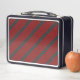 Red and charcoal five stripe pattern metal lunch box