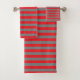 Red and Charcoal Grey Stripes Bath Towel Set