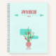 A red and cyan notebook with a simple floral design of geometric flowers for school girls.