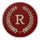 An elegant monogrammed simple image of faux gold and white glitter wreath over a dar-red background.