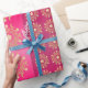 Red and Fuchsia Stripes with Gold Moons and Stars Wrapping Paper
