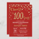 Red and Gold 100th Birthday Diamond Invitation