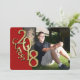 Class of 2018 graduation invitation with "class 2018" printed metallic gold graduation year over classic red to highlight a favourite senior picture and plenty of room on the reverse side of this elegant grad invite or announcement.