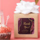 This elegant and glamourous birthday thank you sticker features a red agate marble background with faux gold glitter accents. The text combines handwritten script and modern sans serif fonts for a classy and sophisticated look. This will be perfect for autumn fall and winter birthday parties.