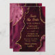 Make a bold and elegant first impression with this burgundy red and gold agate marble Save the Date card. Featuring rich jewel-toned wine and crimson hues, organic stone textures, and shimmering gold accents, this design sets the tone for a luxurious and unforgettable celebration. The dramatic contrast of teal blue and metallic gold creates a refined, modern aesthetic that’s perfect for formal, glamorous, fall, or winter weddings. Fully customizable with your names, date, and location, this agate-inspired Save the Date is a stunning way to announce your upcoming wedding in timeless style.