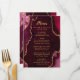 This elegant and glamourous wedding menu features a red agate marble background with faux gold glitter accents. The text combines handwritten script and modern sans serif fonts for a classy and sophisticated look. This will be perfect for autumn fall and winter weddings.