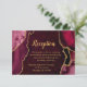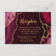 Complete your wedding stationery suite with this elegant reception enclosure card featuring a burgundy red agate marble design accented with luxurious gold details. The bold geode-inspired background creates a dramatic and sophisticated look, perfect for fall and winter weddings, formal celebrations, or glamorous evening events. Designed to provide guests with reception information such as cocktails, dinner, and dancing, this enclosure card pairs beautifully with matching invitations. The clean, modern typography keeps your details easy to read while complementing the organic agate texture. Easily personalize all text to suit your wedding details and create a seamless and stylish experience for your guests.