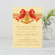 Simple yet elegant Red and Gold Bells Christmas Party Invitation featuring a lightly coloured faux parchment paper background, a triple band of stripes and a pair of golden bells with a pretty red and gold bow. This sophisticated holiday invitation is perfect for your inviting friends and family to your Christmas celebration. Easy to customise, simply add the details of your party in the fields provided. Click on the "Customise It" button to find additional personalisation options.
