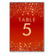 Table Number Cards. Gold Confetti Dots and Red Design. ⭐DIRECTIONS TO ADD NAMES/NUMBERS TO CARDS - Step 1 (Click on Personalise this template) add name and /or number on first card then add it to your cart. Step 2 - click on "continue shopping" and it will return you back to the card so you can add the second number and / or name(s) then add it to your cart - Repeat process until all names and/or numbers have been added. Step 3 - Checkout or continue shopping. ⭐This Product is 100% Customisable. Graphics and / or text can be added, deleted, moved, resized, changed around, rotated, etc... ⭐99% of my designs in my store are done in layers. This makes it easy for you to resize and move the graphics and text around so that it will fit each product perfectly. 📌 (Please be sure to resize or move graphics if needed before ordering) You can also "TRANSFER DESIGN" on other Zazzle products and adjust the design to fit most of Zazzle items. (button is down on the right side of the page) This design is made with high resolution vector and/or digital graphics for a professional print. 📌NOTE: (THIS IS A PRINT. All Zazzle product designs are "prints" unless otherwise stated under "About This Product" on the left side of this page) The design will be printed "EXACTLY" like you see it on the screen and on the product...so please make sure when you do your changes on the resizing of any of the graphics or text that it fits in the areas correctly and that your spelling and wording is how you like it to be in size, colour and font. If you have any questions about the "DESIGN ONLY" or need help please contact me at ✉ siggyscott@comcast.net or visit my store link: https://www.zazzle.com/store/designsbydonnasiggy (Copy and Paste) I'll be happy to help. 📌 ALL OTHER QUESTIONS (shipping, refund, the printing, the product, etc...) please contact Zazzle or the Maker ⭐DIRECTLY⭐. Thank you for the support and stopping by my store - DesignsbyDonnaSiggy. © Donna Siegrist⭐⭐⭐ ZAZZLE promises 100% satisfaction. If you don't absolutely love it, Zazzle will take it back! ⭐⭐⭐ 1-888-8ZAZZLE (1-888-892-9953) Phone hours: Mon - Fri: 9AM - 5PM PT (12PM - 8PM ET)