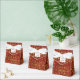 Chic Christmas tent shaped favour box done in a red and gold tone damask pattern. Graphics of a gold edged decorative white text area, on the front flap, has dark red custom text ready to personalise. Great for your holiday party favours and wrapping for small Christmas gifts.